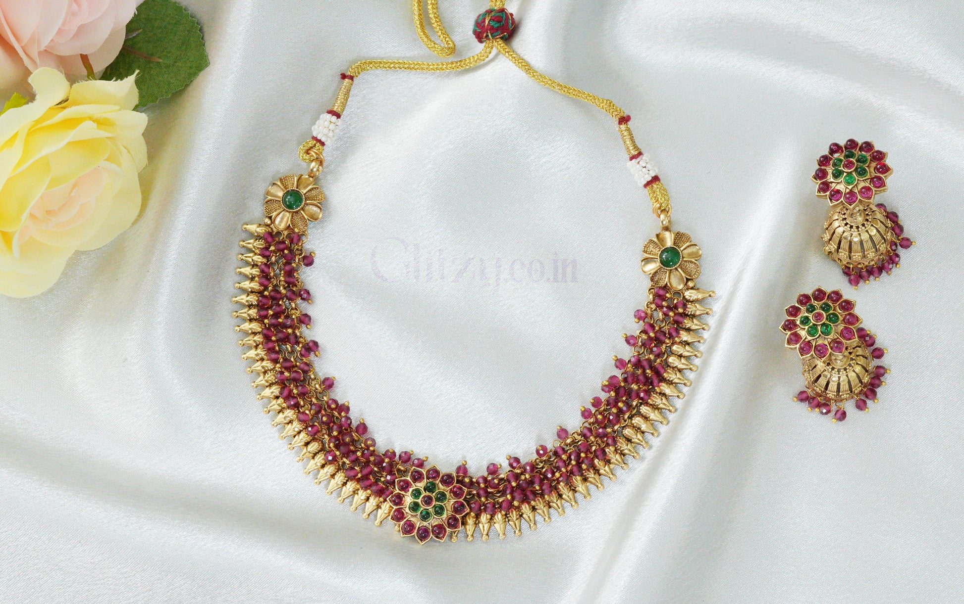 Ranjani Ruby Floral Necklace Set