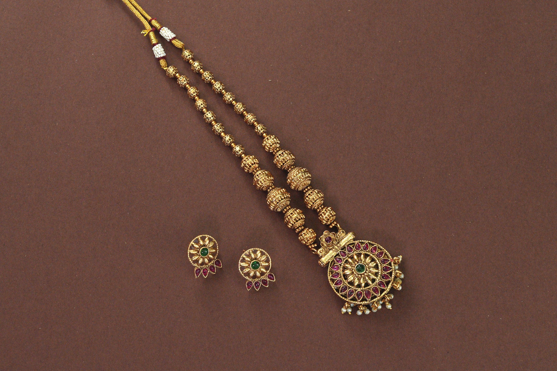 Reversible Temple Necklace round pendant Set with Dual Earrings